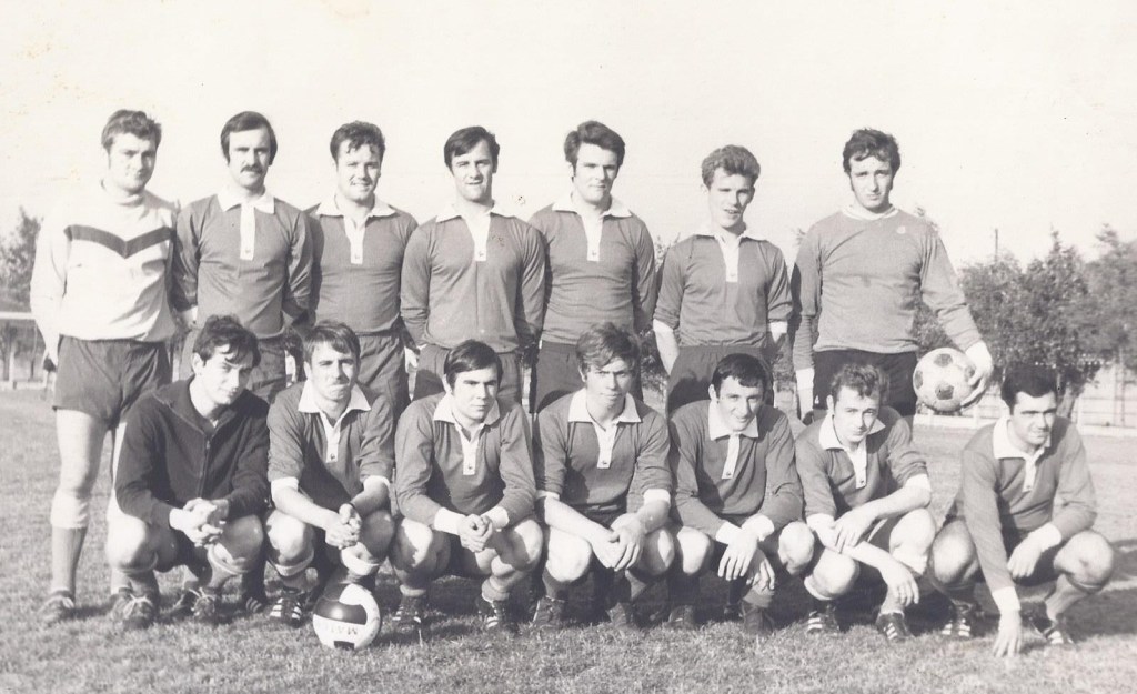 Debout : KOSZAK, Jean OPILA, Jacques GUERVILLE, Claude TITTARELLI, André FIEVET, Jean-Marie QUEVA, BILLET (arbitre)