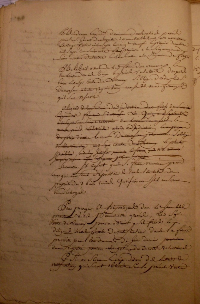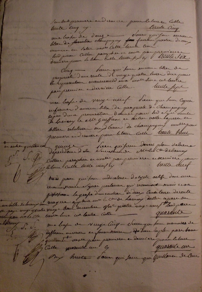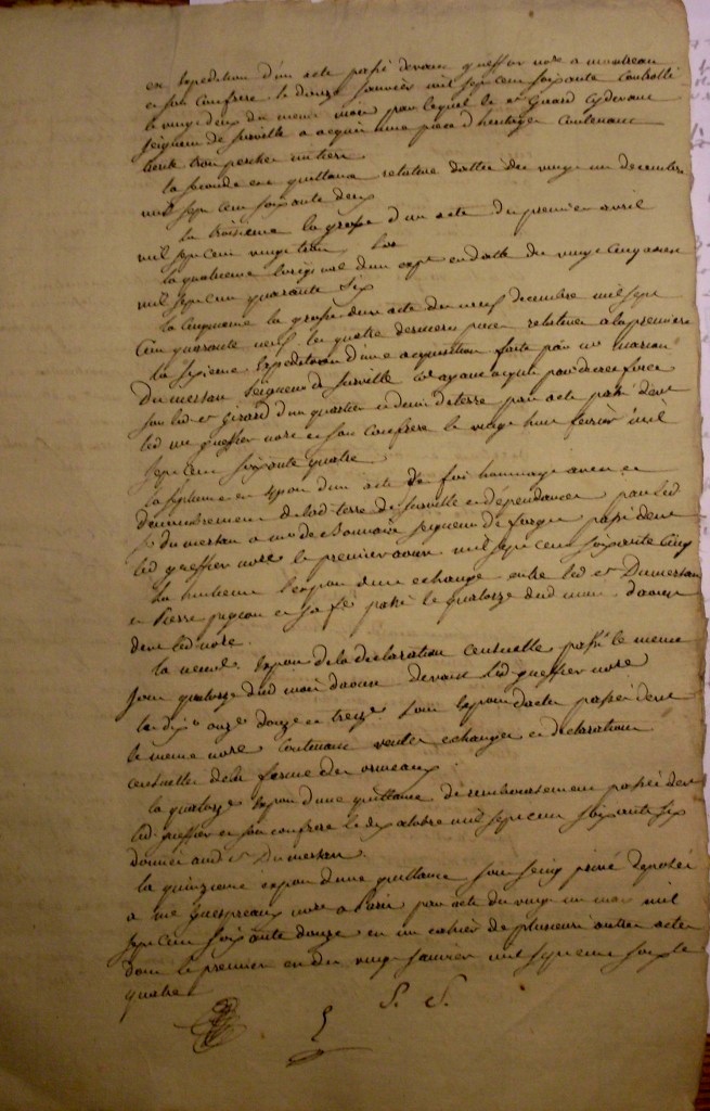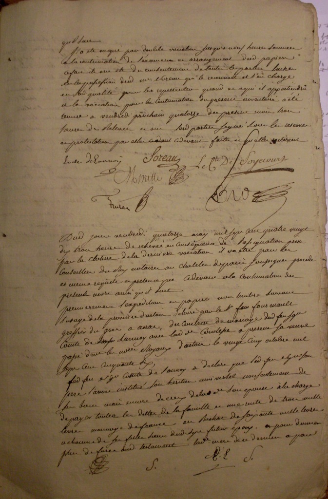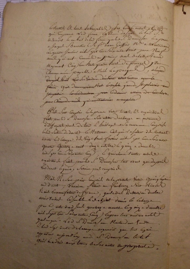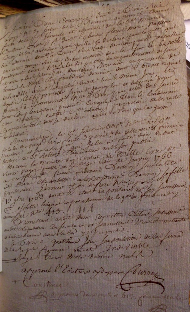 « La citoyenne marie françoise constance antoinette dassignies, veuve de françois ferdinant lannoy, dĂ©clare avoir cinquante quatre ans, elle ne peut dire son revenue ayant des charges a payĂ© de sur son biens, ayant le sellĂ©e de sur ses papiers, je dĂ©clare ĂȘtre cultivatrice est jen ai fait la dĂ©claration aux dont forcĂ©e est aux administrateurs du directoire du district de la commune de bĂ©thune je dĂ©clare avoir Ă©tĂ© arrĂȘtĂ©e le vingt huit pluvios par mesures de suretĂ© gĂ©nĂ©ral des reprĂ©sentants st just est le bas Ă bĂ©thune le dix dĂ©cadi de messidor lan deuxiĂšme de la rĂ©publique française une et indivisible, la citoyenne Vá” lannoĂż ».