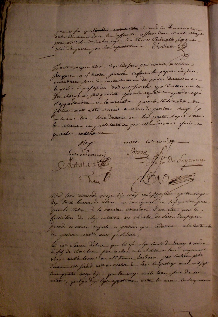 Lors de son procĂšs, elle est dite «veuve Delaunoy»et «agricultrice bĂ©nĂ©ficiant d’un revenu de vingt mille livres». Elle parvient Ă se justifier des reproches qui lui sont adressĂ©set est libĂ©rĂ©e peu aprĂšs. Par dĂ©libĂ©ration du Conseil ExĂ©cutif en date du 10 ventĂŽse de l’An II (28 fĂ©vrier 1794), son nom est retirĂ© de la liste des Ă©migrĂ©s (voir document 5).