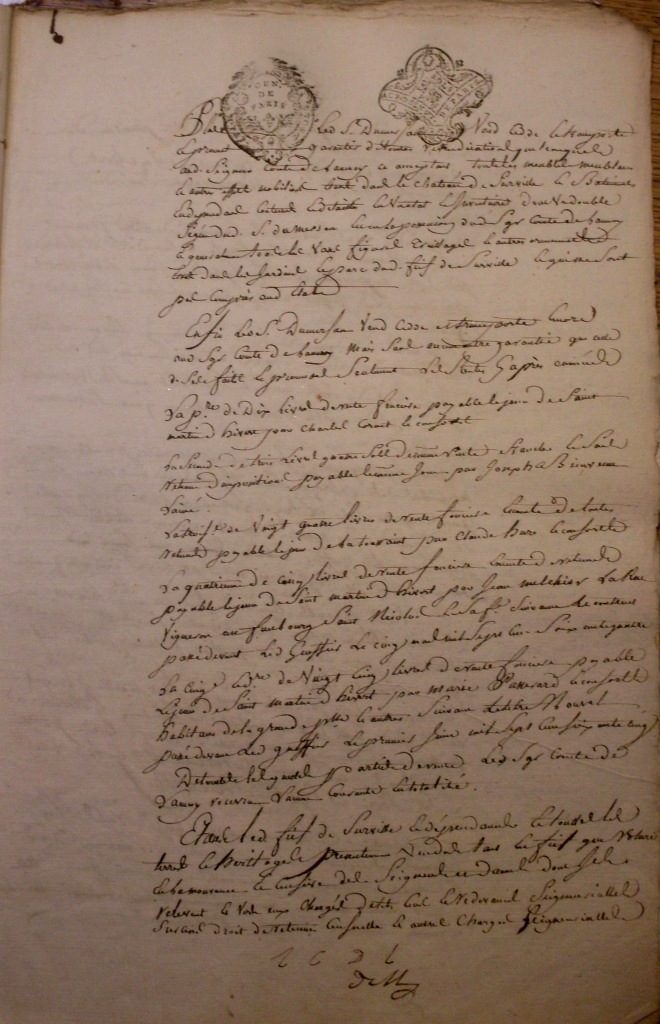 « Marie Françoise Constance d’Assigny veuve de françois ferdinand Delanoy domiciliĂ©e dans cette commune ĂągĂ©e de 54 ans ayant cinq enfants, dont un garçon ĂągĂ© de 30 ans domiciliĂ© Ă paris…..et quatre filles, la 1Ăšre ĂągĂ©e de 29 ans domiciliĂ©e Ă thermisse DĂ©pt de la CĂŽte d’Or, la 2Ăšme ĂągĂ©e de 27 ans domiciliĂ©e rue St HonorĂ©, la 3Ăšme ĂągĂ©e de 25 ans domiciliĂ©e Ă Sainte DĂ©pt de la Seine infĂ©rieure, la 4Ăšme ĂągĂ©e de 24 ans domiciliĂ©e avec sa sĆur ainĂ©e Ă thermisse ».