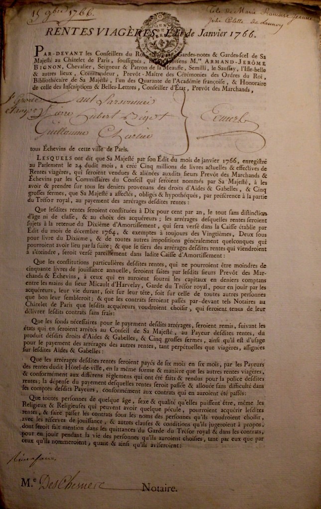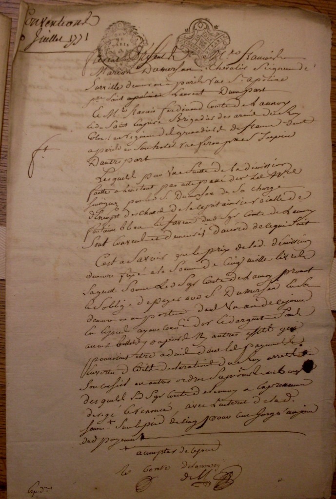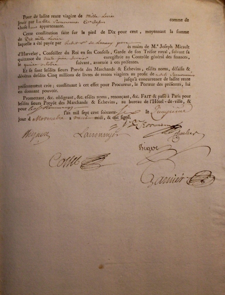 document 8f: acte établissant une rente viagÚre accordée au comte par le Roi de France