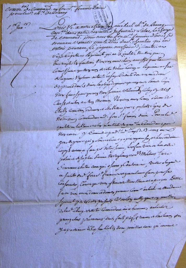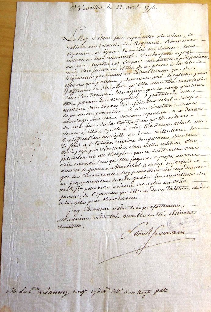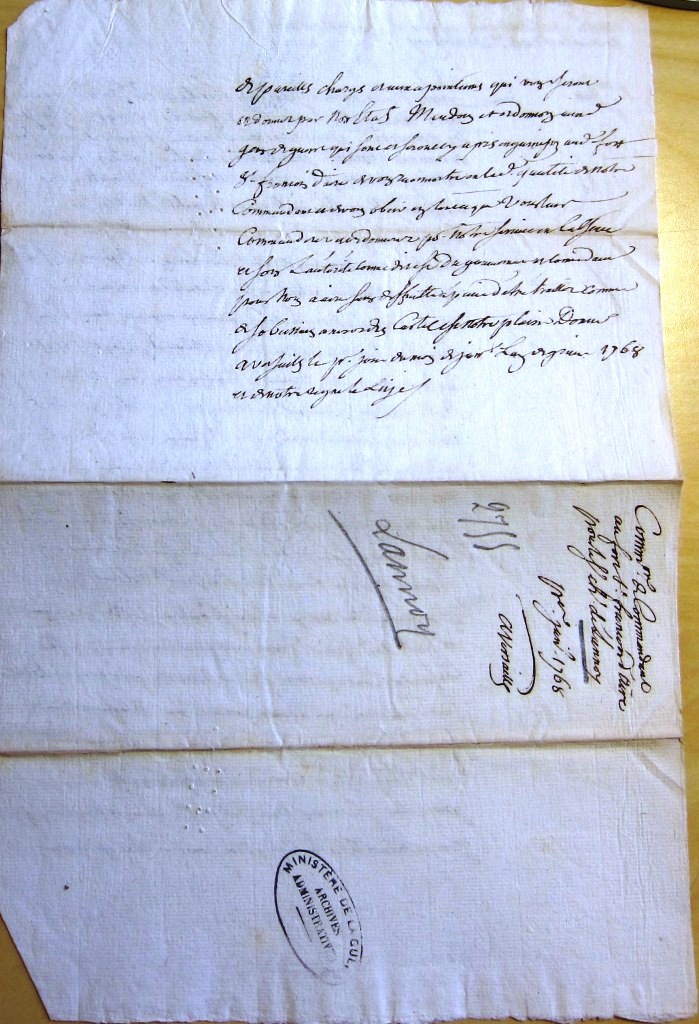 document 8e: lettre de juillet 1768 du Ministre de la Guerre