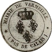 Comme tous les pouvoirs locaux du royaume, VERMELLES (alors encore VERMEILLE) adapte donc son sceau communal aux nouvelles exigences royales. Et c’est ainsi que, dès 1816, figure dans tous les actes officiels et dans toutes les correspondances municipales un sceau orné d’une couronne et de trois fleurs de lys.
