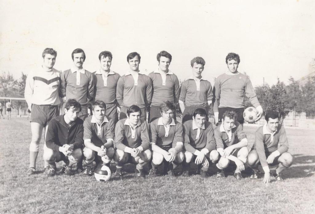 Debout : KOSZAK, Jean OPILA, Jacques GUERVILLE, Claude TITTARELLI, André FIEVET, Jean-Marie QUEVA, BILLET (arbitre)